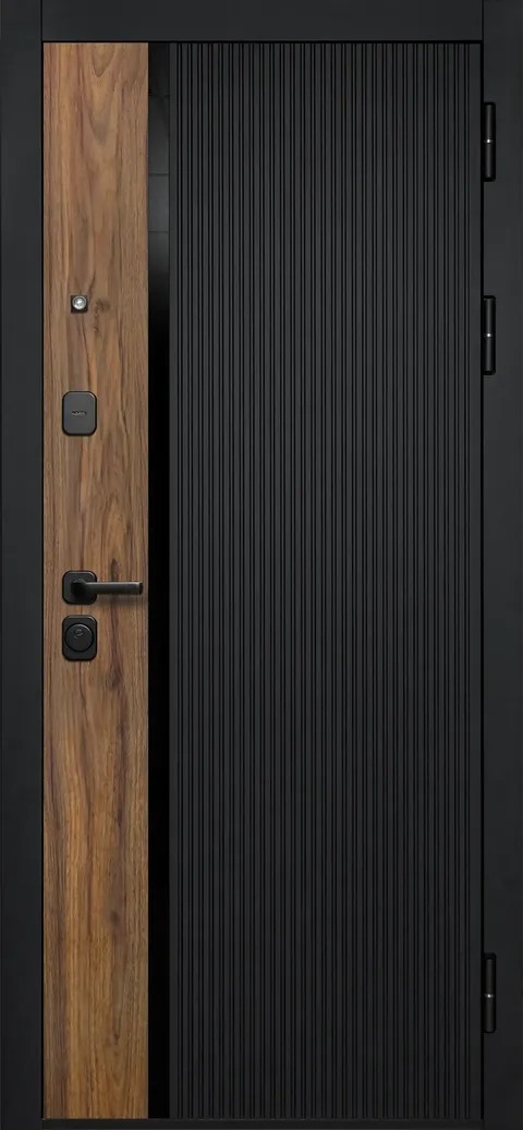 | Отделка снаружи: | фрезерованная МДФ-панель 10 мм, цвет – «Сатин черный», «Орех каньон коньяк», вставка - черное стекло. |