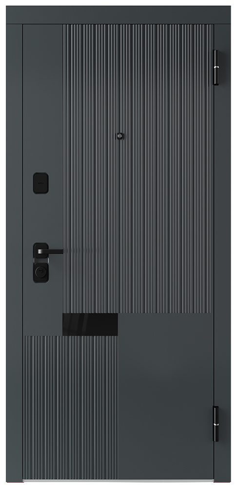 | Отделка снаружи: | Фрезерованная влагостойкая панель МДФ высокой плотности 16 мм, эмаль, цвет "Антрацит", вставка из черного глянцевого стекла |