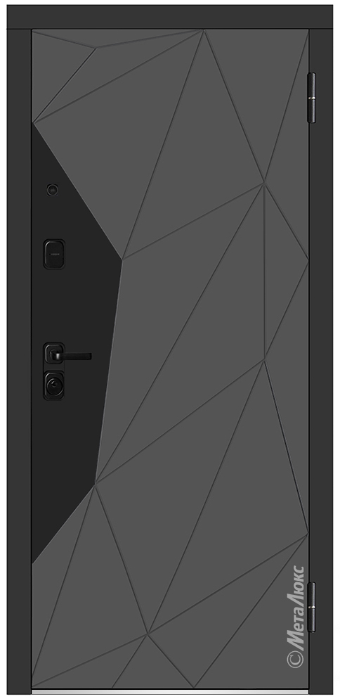 | Отделка снаружи: | Фрезерованная влагостойкая панель МДФ высокой плотности 16 мм, эмаль, цвет "Серый" (цвет на выбор), черная металлическая вставка |