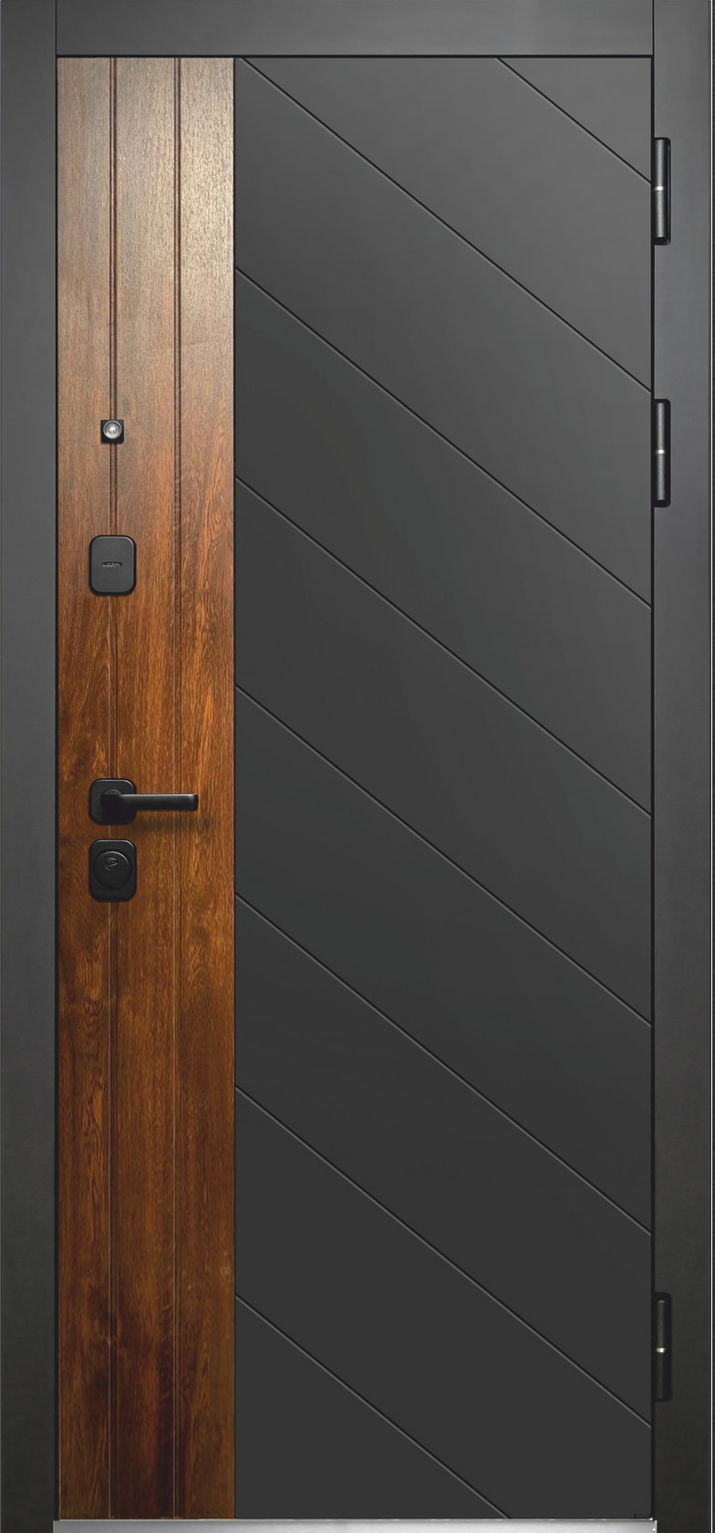 | Отделка снаружи: | фрезерованная МДФ-панель12мм, цвет «Антрацит софт», вставка «Грецкий орех» |